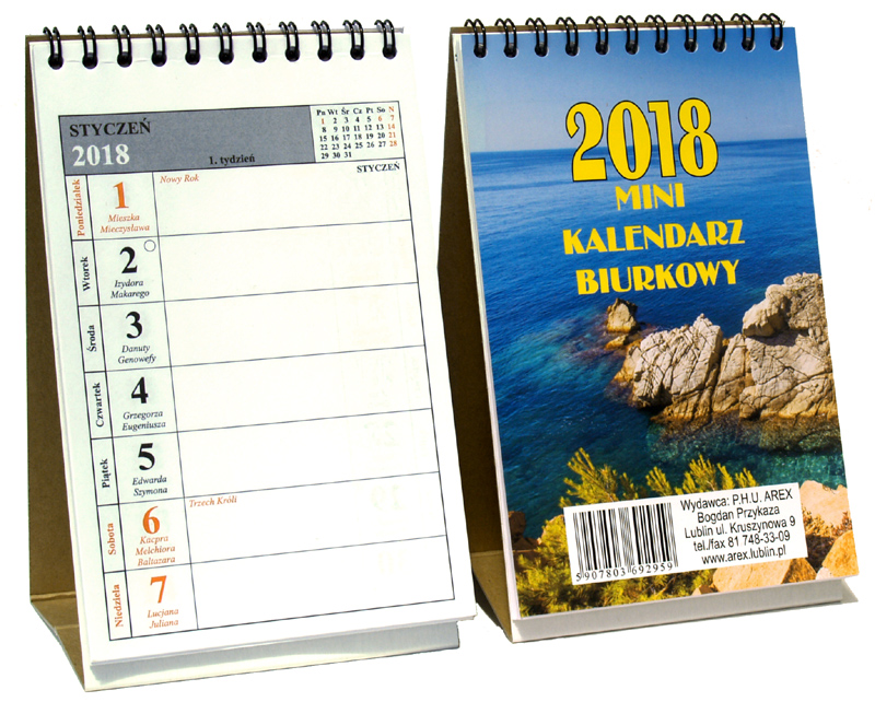 - Kalendarz biurkowy stojący h5 pion układ tygodniowy merkury producent.