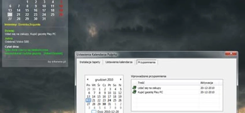 - Kalendarz na pulpit desktop calendar polskiej produkcji to darmowy program dodający do tapety na pulpicie systemu operacyjnego windows w pełni konfigurowalny kalendarz dużą zaletą aplikacji jest niskie zapotrzebowanie na zasoby komputera dodatkowo kalendarz na pulpit oferuje także funkcje prostego terminarza przypominającego o różnych ważnych wydarzeniach takich jak.