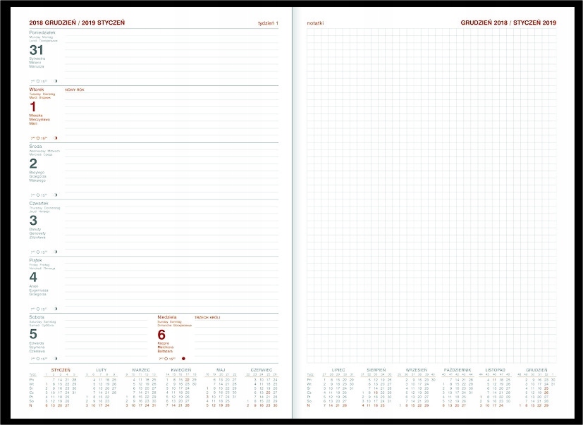 kalendarz a4 tygodniowy z notesem